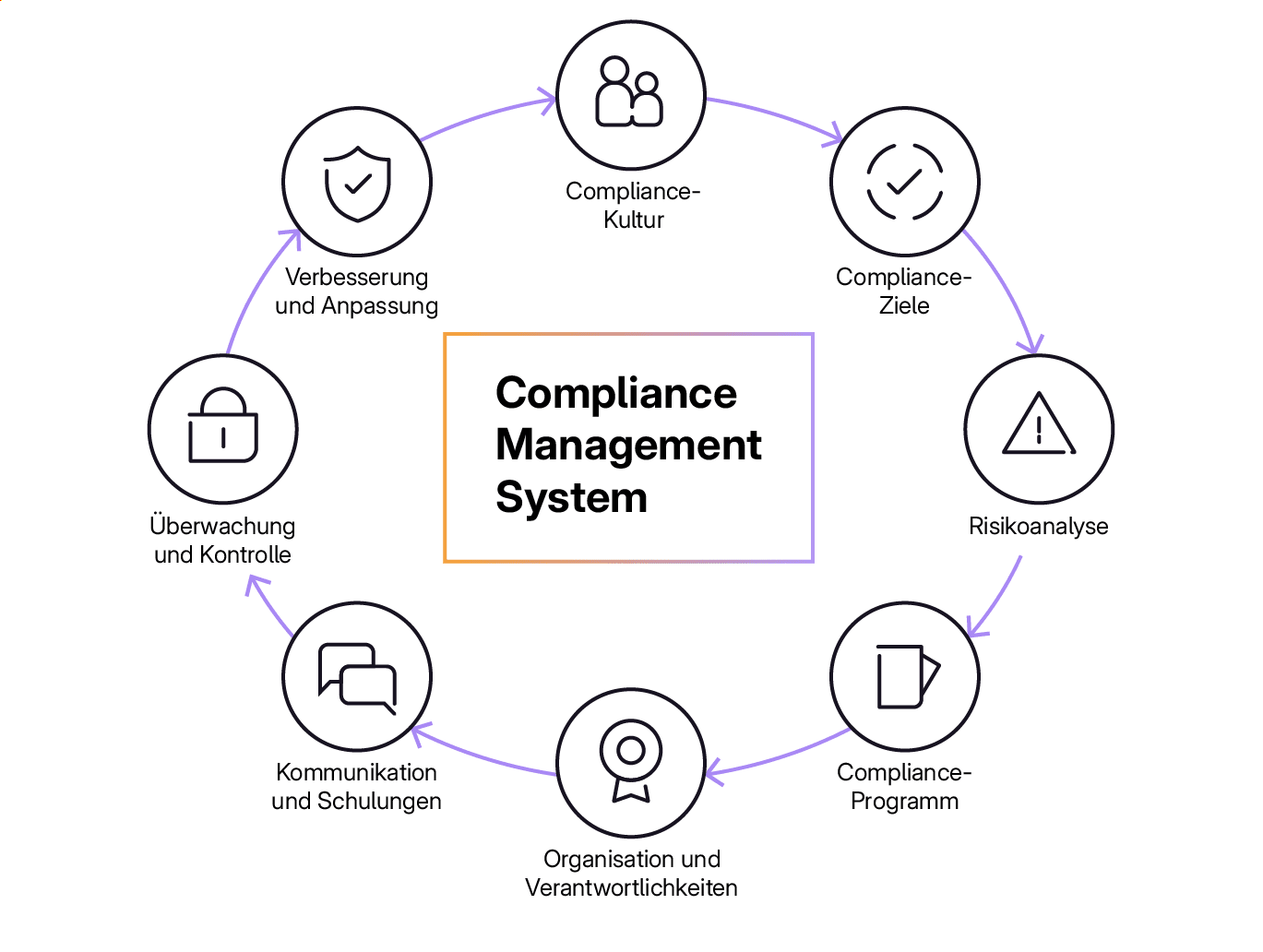 | Compliance-Kultur | Werte, Haltung und Vorbildfunktion der Führungsebene. Sie bildet die Grundlage für regelkonformes Verhalten im gesamten Unternehmen. |